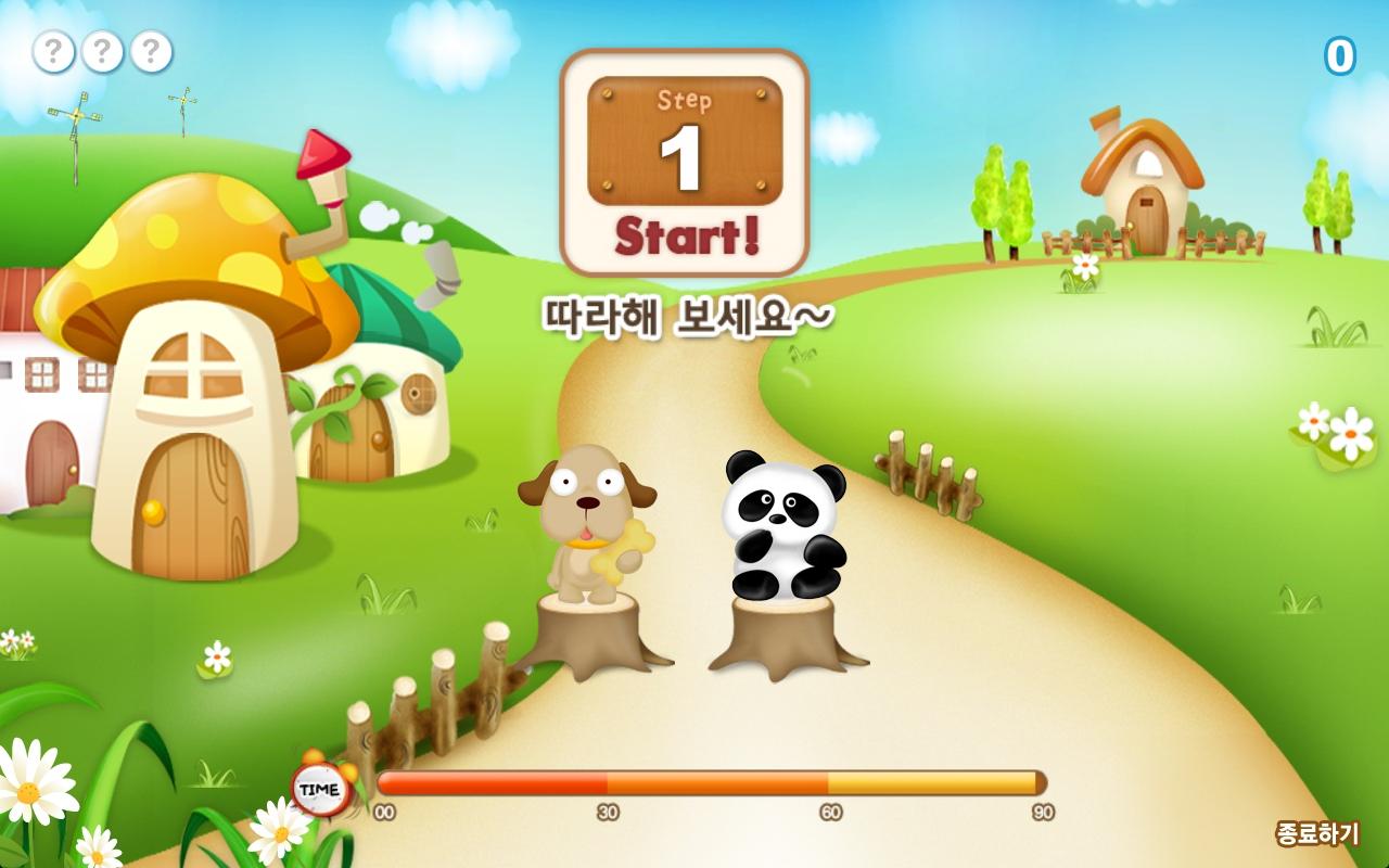 "점핑! 점핑!"은 동물 친구들의 점프 순서를 따라해 보는 게임으로, 단계별로 동물 친구들의 점프 횟수와 등장하는 동물 친구들이 늘어납니다.