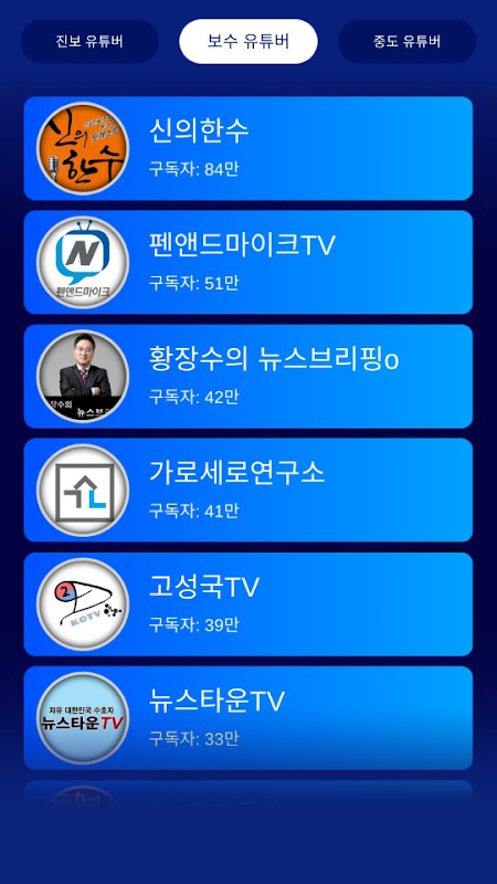 진보와 보수 채널을 한군데 모아놓았습니다.