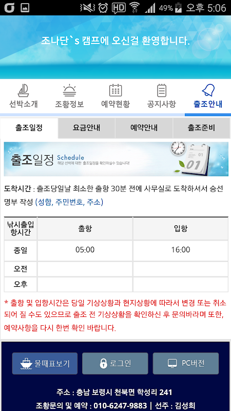 출항항: 보령시 천북면 학성리 241 조나단`s 베이스 캠프