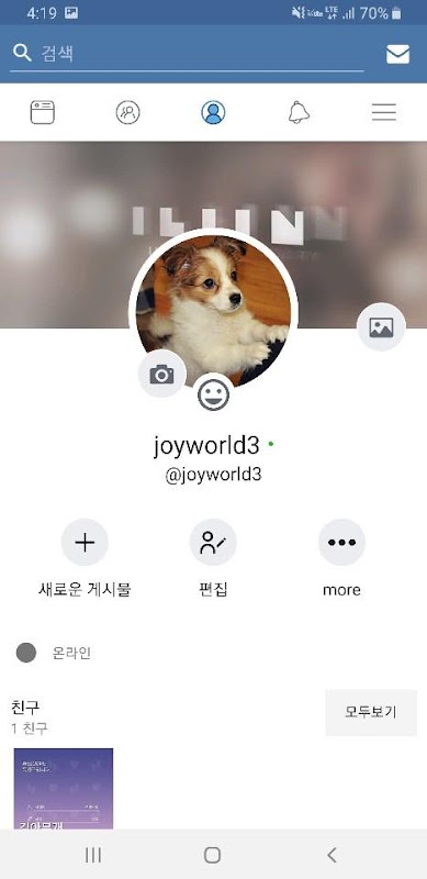 프로필 섹션 : 게시물을 볼 수있는 개인 프로필이며, 개인 정보를 편집하고, 사진 또는 표지를 변경할 수 있습니다.