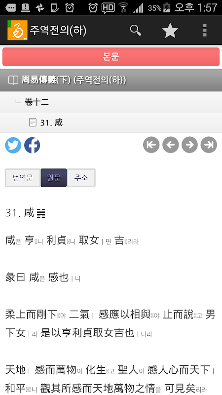 - 전통문화연구회 보급하고 있는 동양고전 앱 시리즈 중 하나인 주역전의周易傳義(하) 입니다.