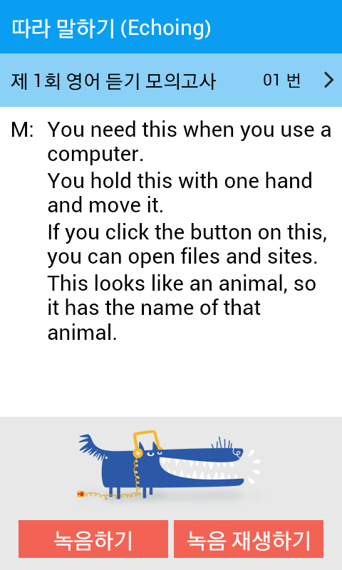 - 녹음 기능을 통해 원어민의 발음과 나의 발음을 비교할 수 있습니다.