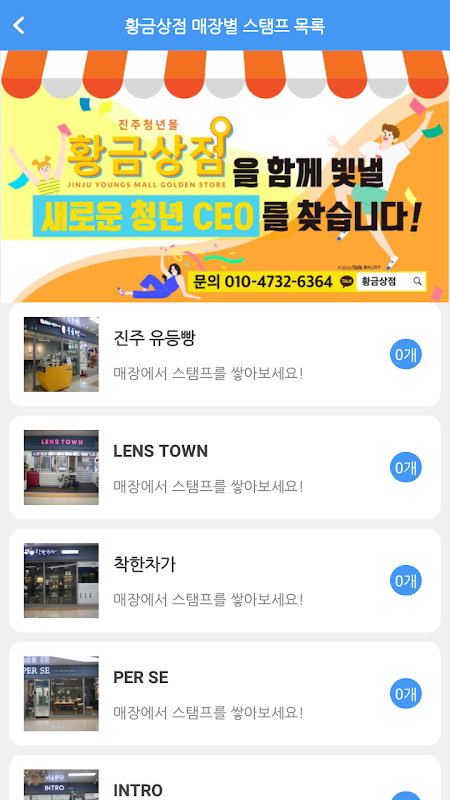황금상점의 여러 매장에서 구입 후 적립한 스탬프를 하나의 앱으로 관리하고