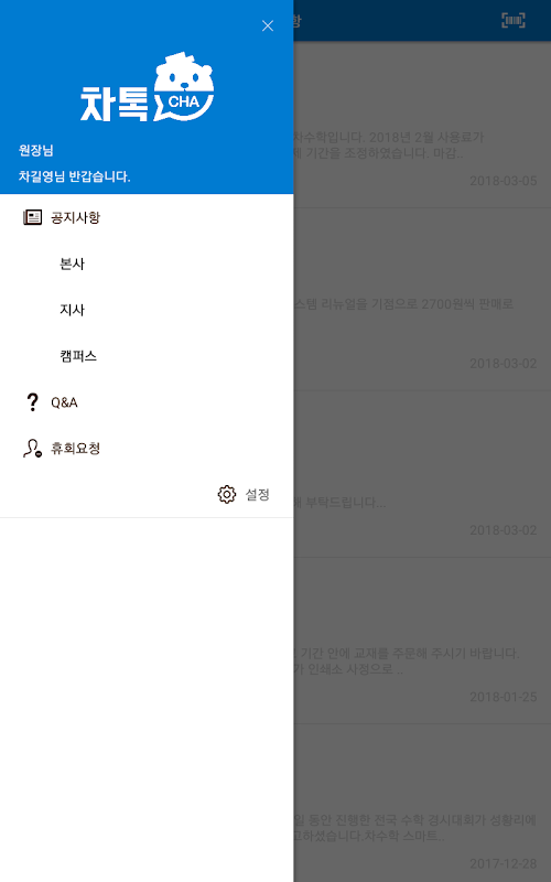Quando o presidente informa a escola ou os avisos da álgebra e das novas notícias, você pode verificar diretamente no CHA Talk.