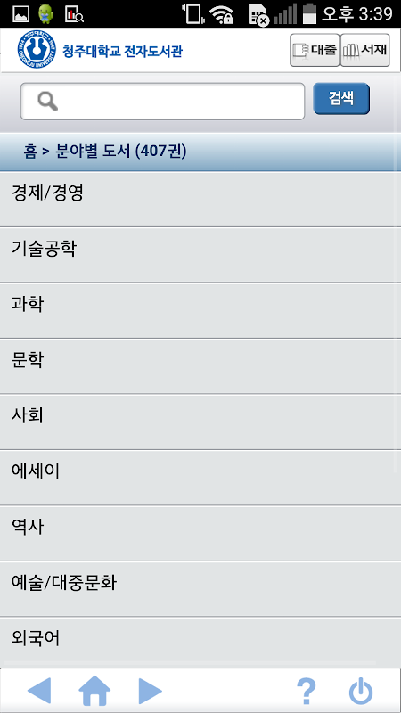 Livros que utilizam os serviços de Biblioteca Digital da Universidade Cheongju foi configurado para permitir o uso fácil em seu smartphone.
