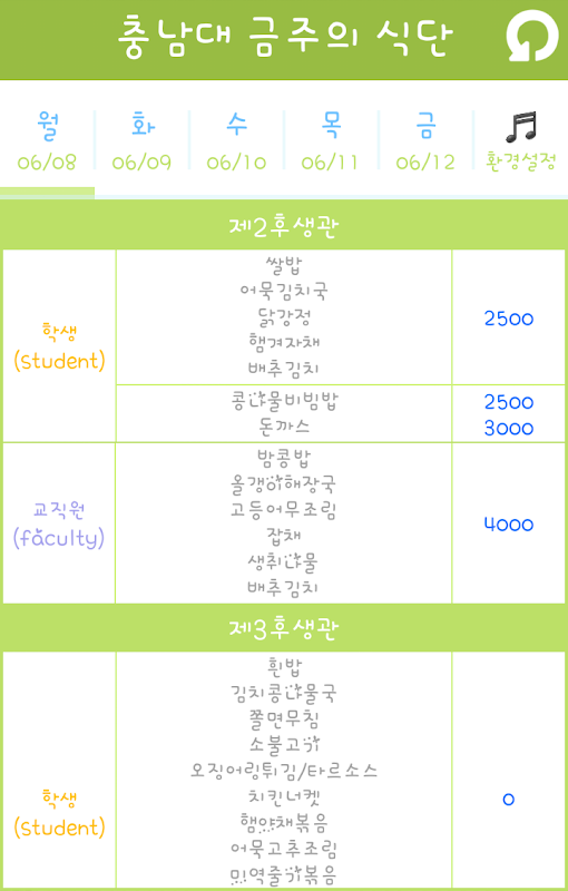 충남대 학교 금주의 식단 (CNU Cafeteria) 2.2