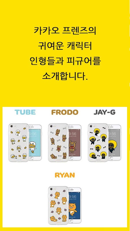 카카오의 인기캐릭터인 라이언, 무지, 어피치, 프로도, 네오, 튜브, 제이지, 콘 등 캐릭터 인형/ 피규어와 카카오 프랜즈의 귀여운 캐릭터들을 소개하며, 새로 선보이는 참신한 캐릭터 정보를 발빠르게 제공 합니다.
