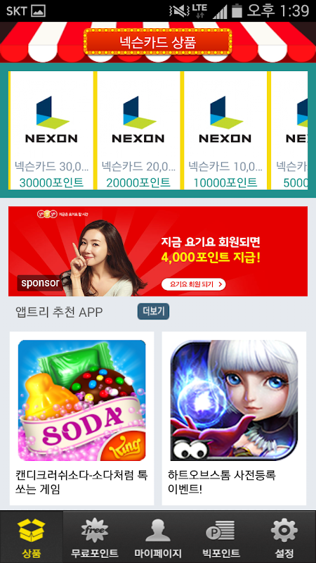 넥슨게임에서 바로 이용할 수 있는 넥슨캐시 상품권을 무료포인트로 바로 뽑아서 이용가능합니다.