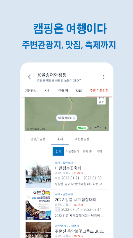 (Selecionado como app de acampamento representativo da Coreia pela grande mídia, como MBC, T Store, Chosun Ilbo e Hankyung TV.)