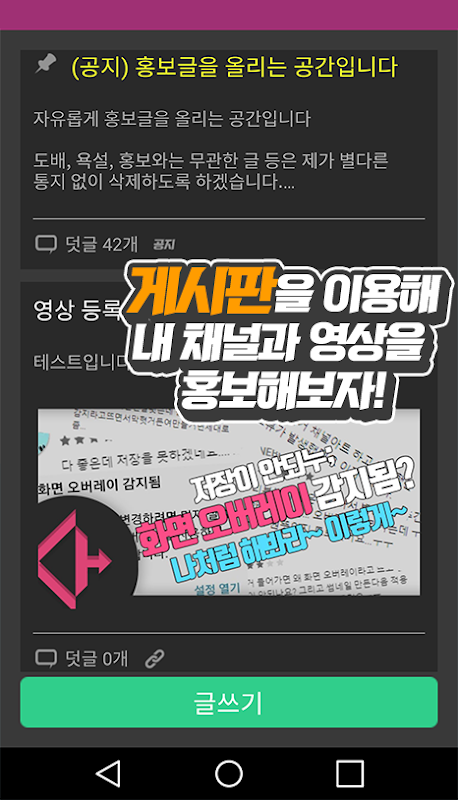 +유튜브 영상 주소를 적을경우 영상이 보여집니다
