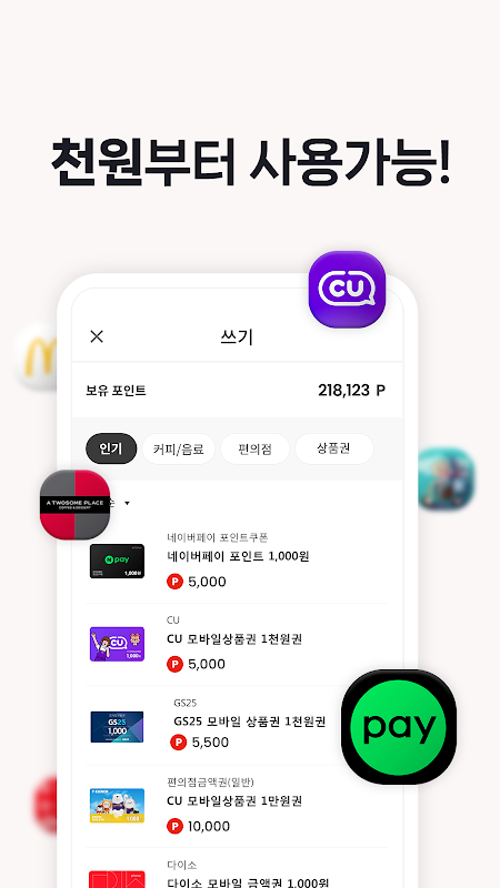 - Ganhe pontos para resgatar no Naver Pay, vales-presente e outros vales-presente.