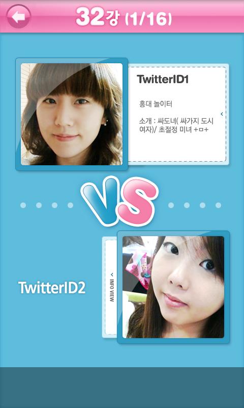 '트위터 이상형 월드컵'은 트위터 팔로워 중 한 명을 선택하여 선택된 트위터의 팔로워들을 이용해 이상형 월드컵을 진행합니다.