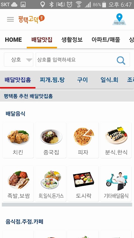평택시 전지역의 배달음식정보, 맛집정보와 신도시 지역의 아파트정보, 상가 분양정보 및