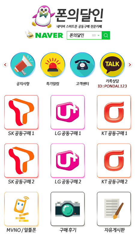 네이버 스마트폰 공동구매 전문카페! 폰의달인 특가 알림 어플 서비스입니다. 국내 모든 최신폰, 특가폰, 공짜폰이 한 곳에!
