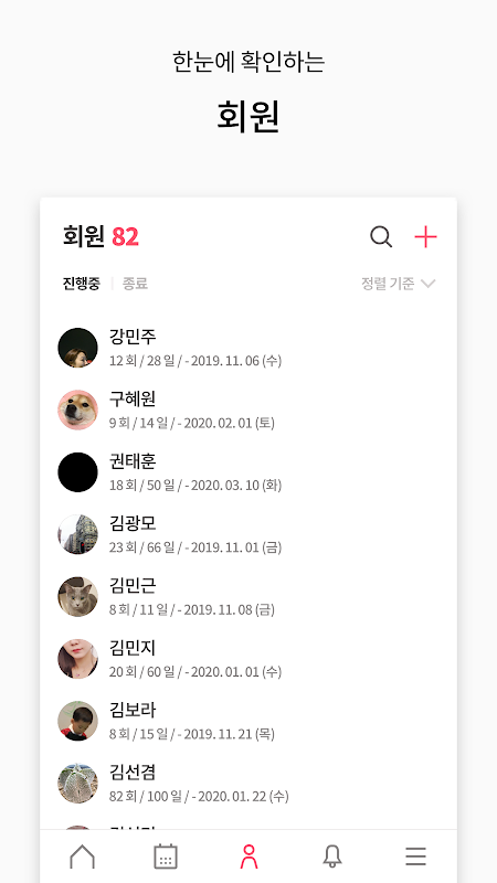 - Função de gerenciamento de ingressos de membros, grupos e cursos: Cartão de gerenciamento de membros registrado com o instrutor (dedução de contagem, histórico de aulas, função de salvar assinatura após a conclusão)