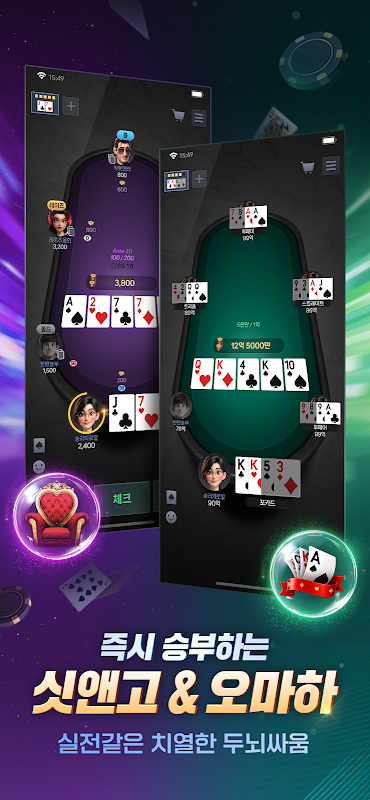 새로워진 로얄홀덤에서 끝없는 승부를 즐겨보세요.