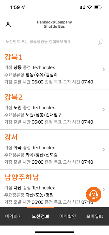 Você pode reservar e usar o ônibus de passageiros por meio do aplicativo de ônibus de passageiros Korea & Company.