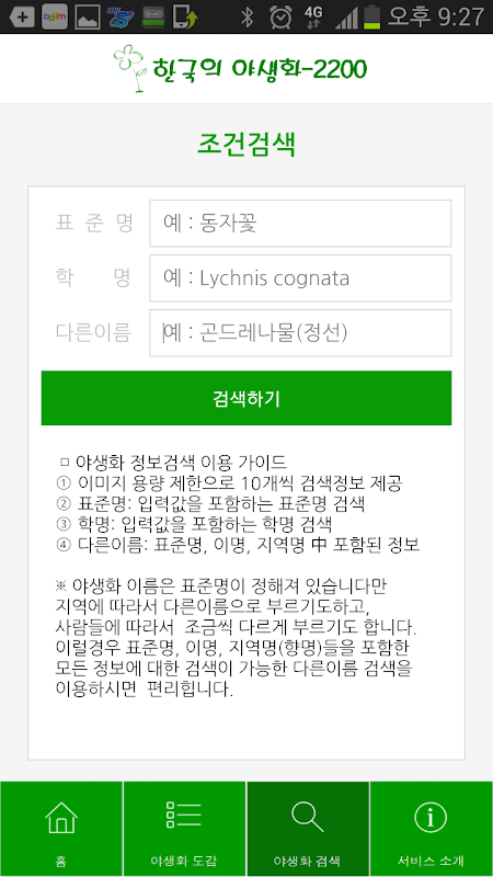 ※ 本 앱은 야생화를 사랑하시는 분들을 위하여 모든 서비스를 무료로 제공하오니 많은 이용을 바라며, 아울러 주위분들께도 적극적인 추천을 부탁 드립니다.