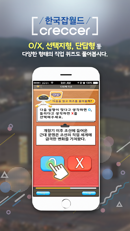 직업관련 퀴즈와 직업과 연계된 증강현실(AR) 게임들로 구성되어 있습니다.