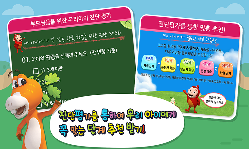 1. [Avaliação de diagnóstico para crianças] Aprendizagem personalizada em que as crianças resolvem os problemas sozinhas e escolhem o Hangul adequado ao seu nível