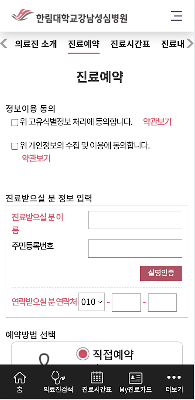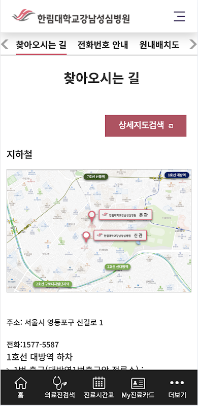 Ao executar o aplicativo, você pode ir diretamente para a página inicial móvel do Hallym University Gangnam Sacred Heart Hospital.