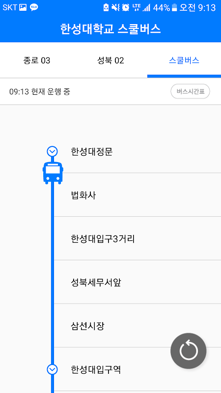 한성대학교 학생들을 위한 스쿨버스 확인 어플리케이션 입니다.스쿨버스 및 성북02, 종로03 버스의 위치를 확인할 수 있습니다.