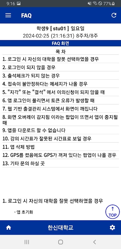 Informações sobre 한신대학교 전자출결 학생용 APK
