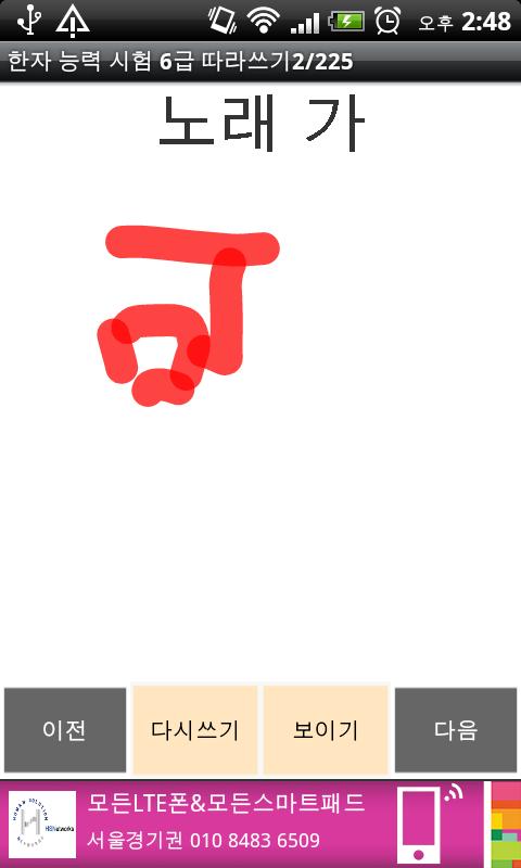 손가락을 이용해서 따라써 보면서 한자를 학습합니다.