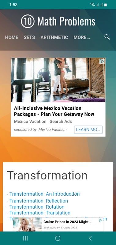 10 Math Problems é um aplicativo para um blog que veicula artigos sobre matemática escolar.