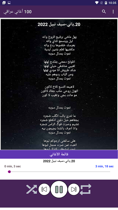 O aplicativo é atualizado constantemente adicionando as músicas iraquianas mais maravilhosas assim que são lançadas