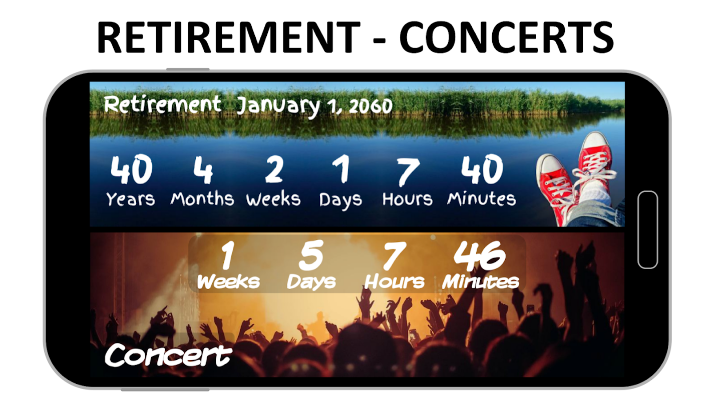 Use widgets pequenos para contadores diurnos e widgets longos para contar todos os meses, semanas e até horas e minutos.