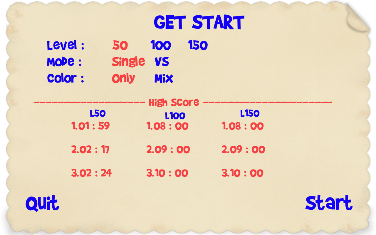 + Modo VS: cada jogador tem 5 segundos para encontrar todos os números que puder. A luta terminará quando o número final (50 - 100 - 150) for encontrado. O vencedor é quem encontrou mais números do que outro.
