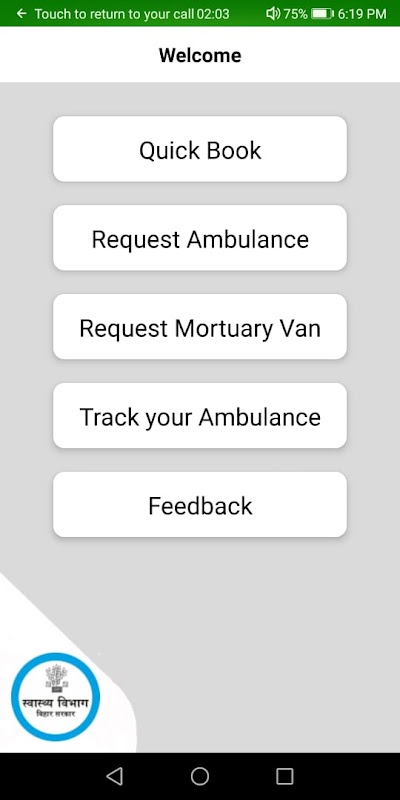 Este aplicativo é usado para reservar ambulância por cidadão de Bihar.