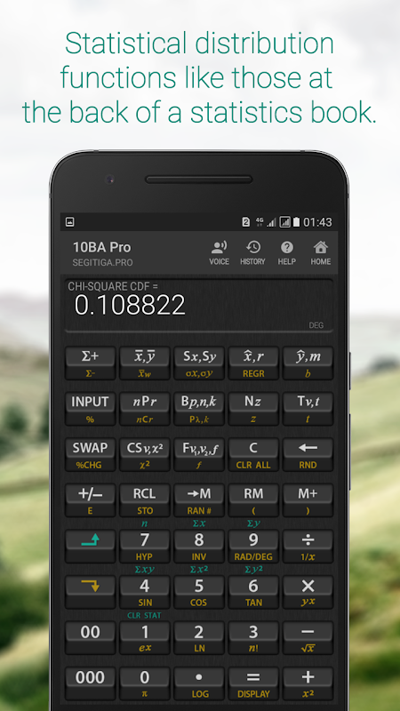 Uma tela separada para estatísticas para que muitas funções possam ser acomodadas. Calcule a maioria das funções de distribuição que você encontra no final de um livro de estatísticas!
