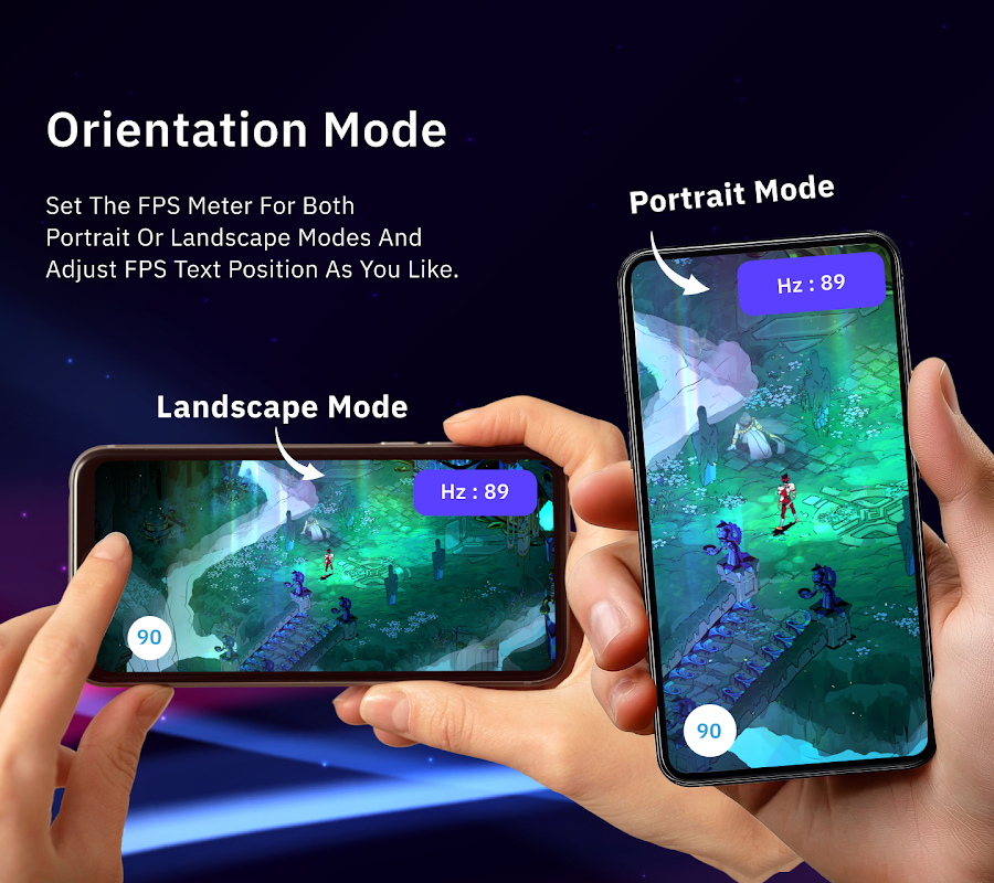 🎮 Configure o medidor de FPS para os modos retrato e paisagem.