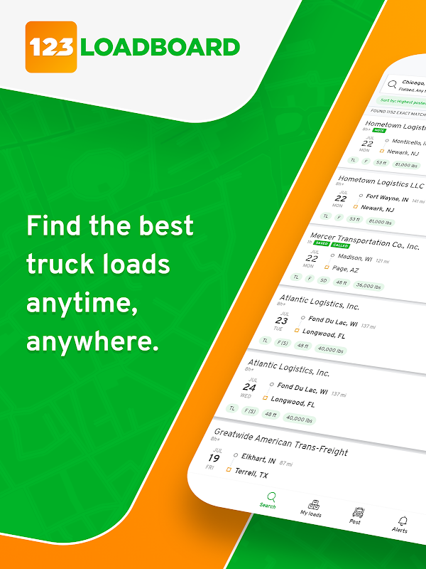 Procurando por cargas de caminhão e ótimas ferramentas de caminhões para ajudá-lo a ter sucesso? O aplicativo móvel do 123Loadboard ajuda caminhoneiros profissionais a encontrar cargas para transportar os EUA e o Canadá. Nunca se preocupe com o deadheading novamente, pesquisando com facilidade milhões de cargas encontradas anualmente na rede de correspondência de frete do 123Loadboard.