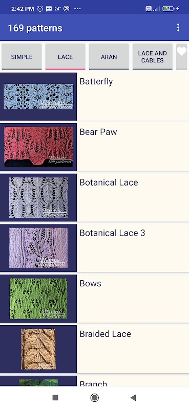 * '169 padrões' é uma coleção de padrões de pontos de tricô ao seu alcance