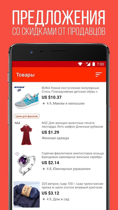 • Há também abas com produtos vendidos a preços baixos e descontos com a possibilidade de configurar notificações push para uma denominação adequada.