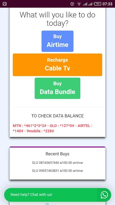 Fund your account wallet, recharge your phone or purchase data for yourself or for your friends and family on a single click.