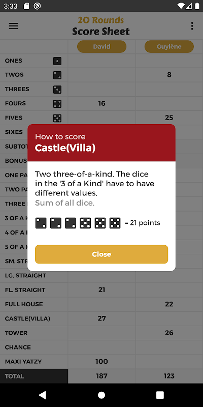 A melhor aplicação para registrar os resultados dos seus jogos Maxi Yatzy.