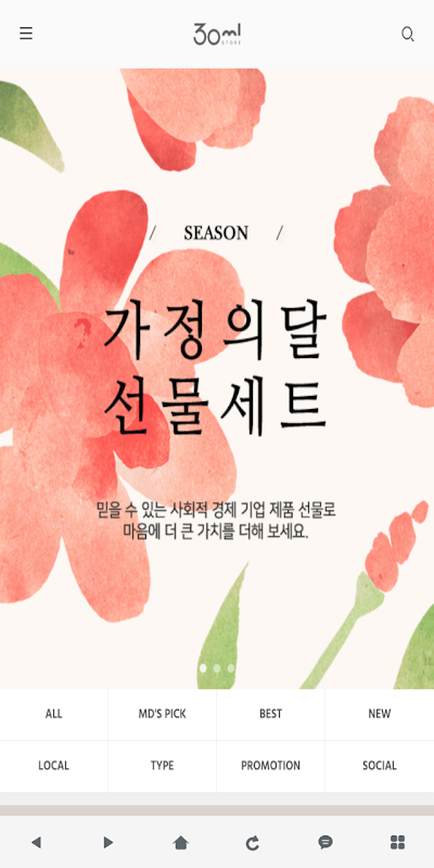 소셜벤처 사회적경제기업 제품을 온. 오프라인으로 판매 유통하는 프리미엄 편집샵 30밀리스토어 앱. 작은구매로 사회의 큰변화를 경험해 보세요.