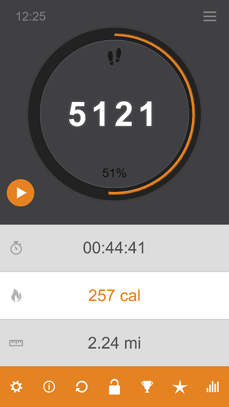 Este aplicativo pedômetro fácil de usar registra e exibe não apenas o número de passos percorridos, mas também o número de calorias queimadas, o tempo gasto caminhando e a distância percorrida.