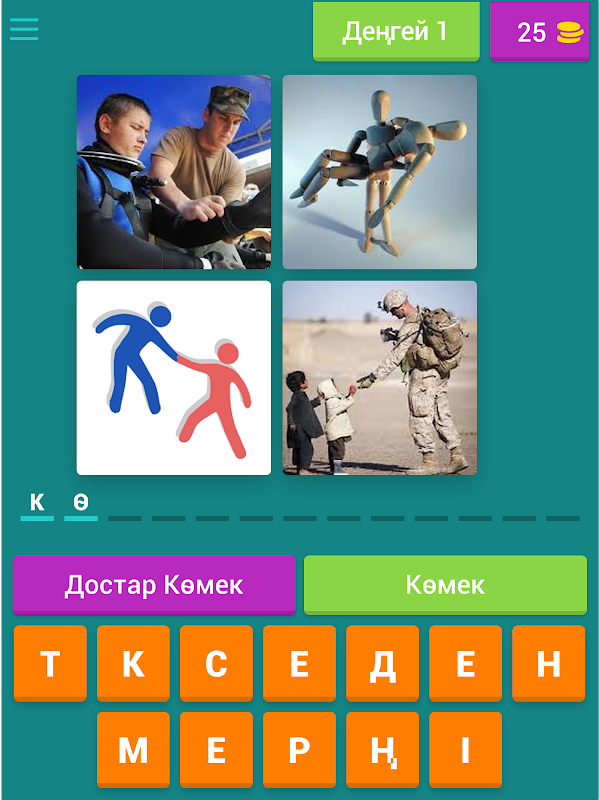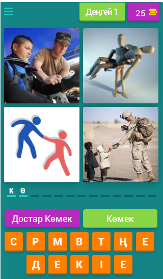 Төрт суретте бір сөз, деңгейдің дұрыс жауап алған кезде монета аласыз.