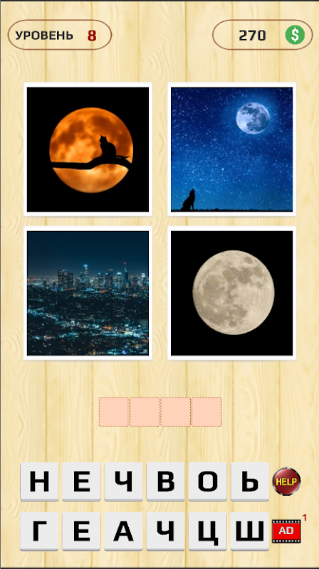 Интересная захватывающая игра 4 картинки одно слово.