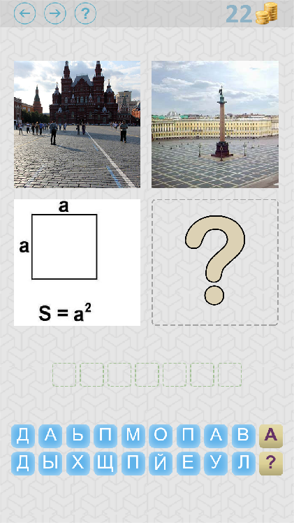 Изначально открыта только одна фотография. Чем меньше картинок вы откроете, тем больше монет получите за отгаданное слово!