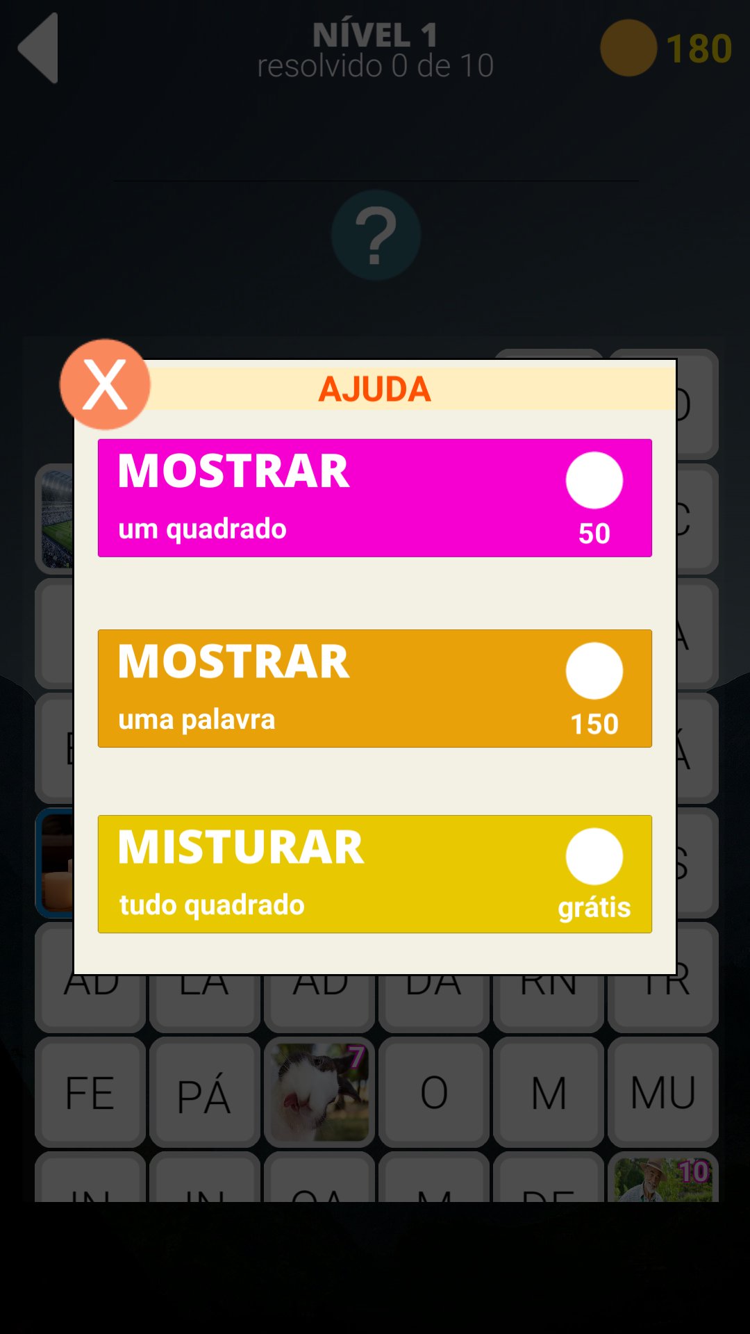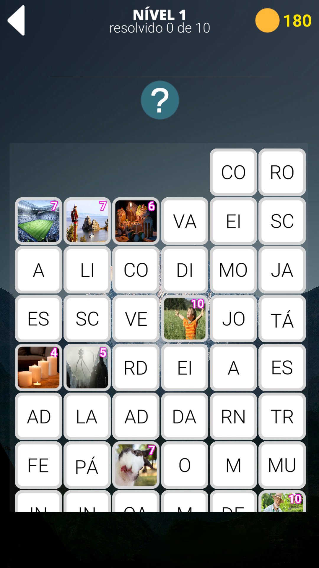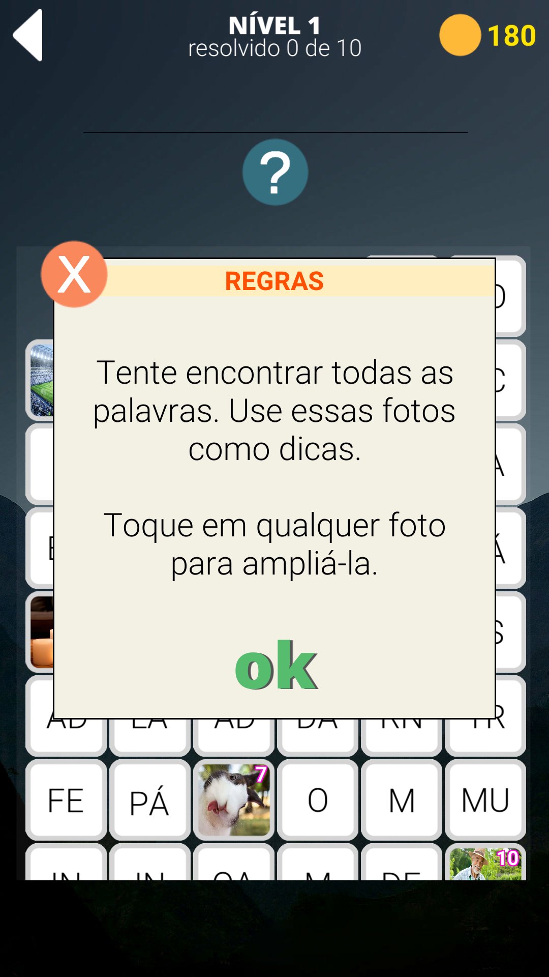 Adivinhe a palavra oculta usando a foto para a pista, as palavras são divididas em fragmentos, os enigmas são de complexidade diferente, de palavras fáceis, que levam alguns segundos para resolver palavras complexas, o que levará muito tempo para resolver.