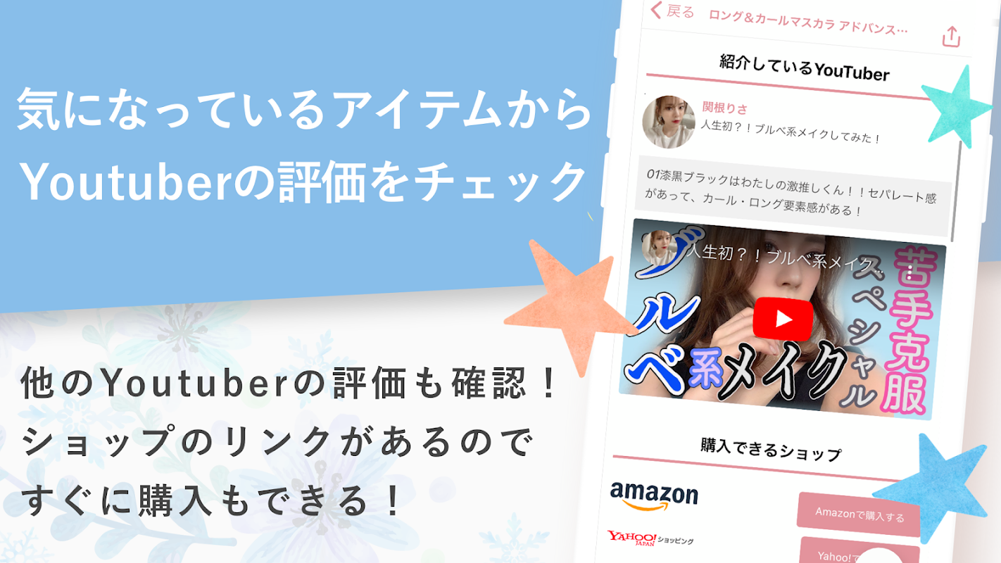 お気に入りのYouTuberから商品を検索できるので、YouTuber愛用コスメが一気に分かる!