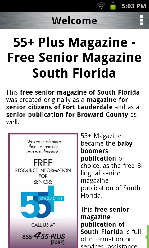 55+ Magazine became the baby boomers publication of choice, as the free Bi lingual senior magazine publication of South Florida.