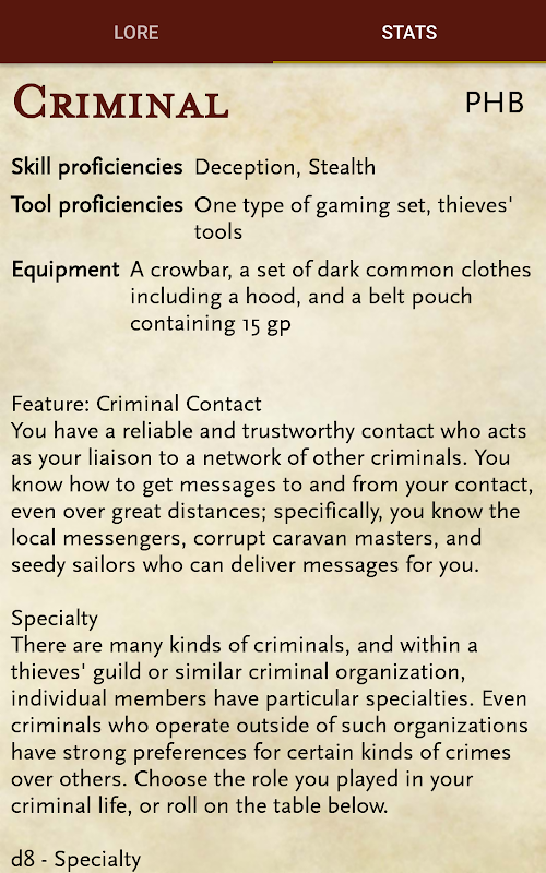 Here you will find an easy reference to every official race, class and background from the D&D 5th edition books.