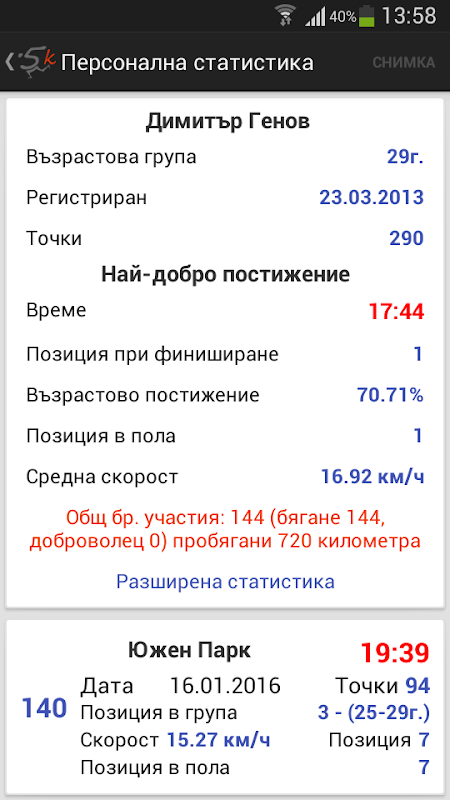 Com esta aplicação pode acompanhar os resultados e estatísticas de 5kmrun.bg